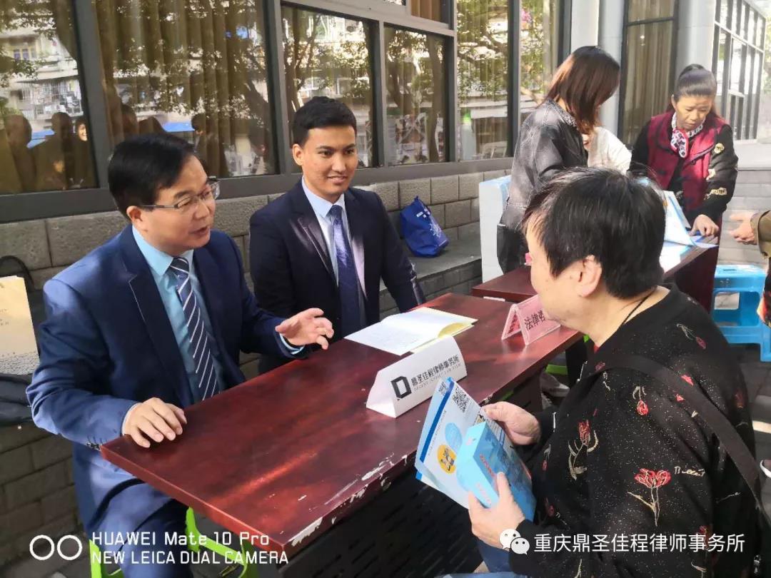 2020年10月22日下午2点,我所合伙人、管委会副主任黄先忠律师携维吾尔族实习律师伊斯坎代尔·艾合麦提江前往江北区五里店街道工校社区给各民族群众提供了免费的法律咨询服务,同时受邀参加工校社区举行的重阳节活动。