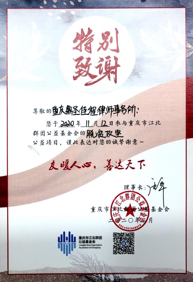 2020年11月12日,我所参与了重庆市江北群团公益基金会的脱贫攻坚公益项目。