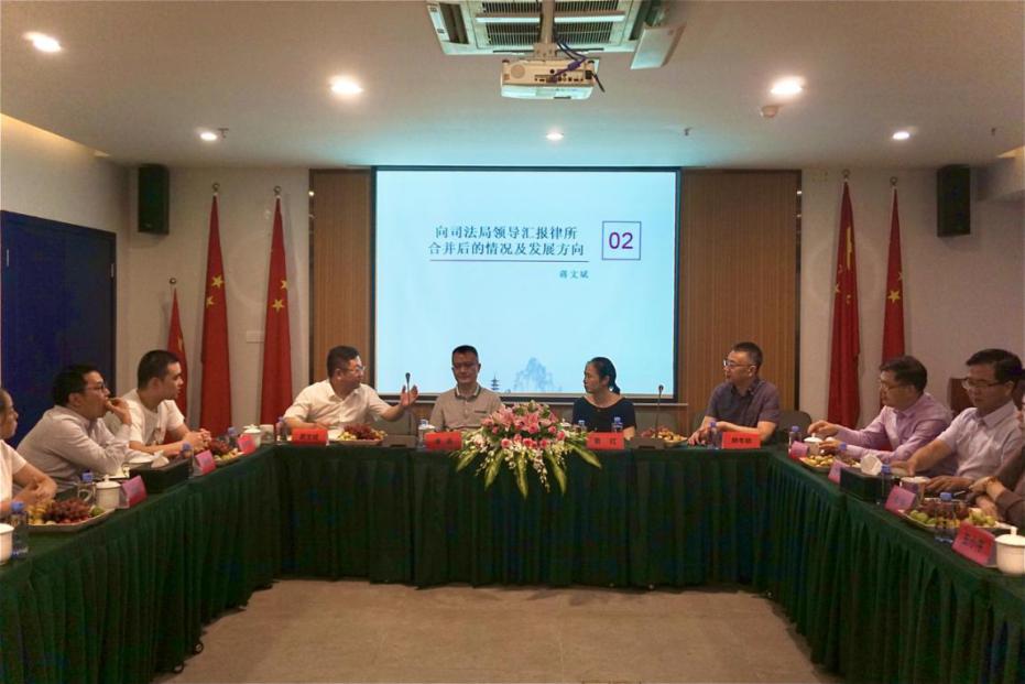 8月11日,重庆市司法局黄红、江北区司法局科长潘勇、党支部书记胡智国及周晓燕一行到访我所参观交流。我所负责人胡冬舫主任携管委会成员与司法局领导针对鼎圣佳程合并后的各项工作进行了一次交流沟通。