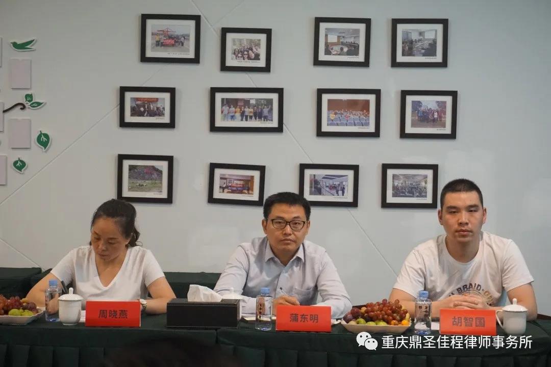 随后,管委会副主任黄先忠向各领导汇报了民宗委的相关工作情况。鼎圣佳程成立于2002年,通过18年的历程与不断努力,打造成了具有特色的律师事务所。2019年,我所被国家民宗委授予“全国民族团结进步示范单位”,也被评为“重庆市民族团结进步示范单位”。全市总计108个少数民族服务站,我所位居其一,多年来一直为少数民族提供法律咨询与帮助。今后,我所将在国家民宗委和重庆市民宗委的指导下,持续不懈的开展少数民族的法律工作! 接着,管委会副主任姜泽国对律所制度、组织架构等进行了介绍。两所合并后,管委会推动各专业部门成立,推进建立各项规章制度,整合团队、引进人才,财务制度更加规范化、专业化。今年4月,我所以全市排名第二的优异成绩成功入选企业破产案件社会中介机构二级管理人名册,并成功当选重庆诚全置业(集团)有限公司破产管理人。现由资深合伙人牵头,集结所内专业能力精湛、职业操守良好的合伙人及律师组建成为专门的破产业务团队,为企业破产相关业务提供优质、高效、全面的法律服务。