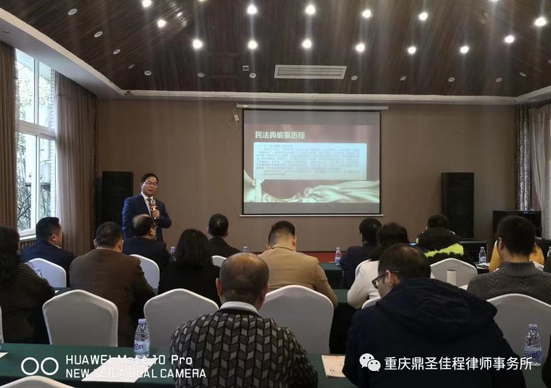 2021年3月20日上午十点,在重庆市江北区铁山坪森林公园东方山水假日酒店,重庆市达川智力之乡联谊会、达县商会、达州中学重庆校友会联合举办了《民法典》热点解析讲座。本次活动由重庆鼎圣佳程律师事务所合伙人黄先忠律师召集并讲解,与会人员50余人。