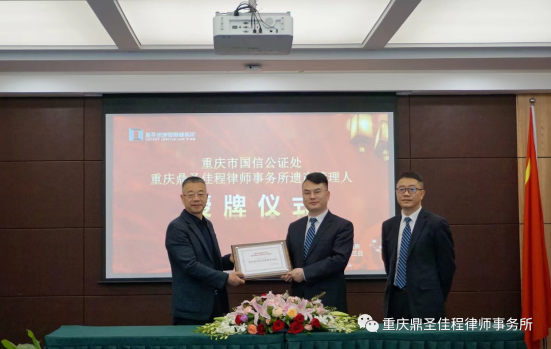 据悉,为满足《民法典》颁布后广大人民群众对遗产处理的现实需求,重庆市国信公证处建立起专业的遗产管理人(机构)推荐名录,计划全面开展“律师+公证+社会专业服务机构”多元化一站式法律服务模式,以公证为律所赋能增信,以律所及社会专业服务机构为公证延伸服务,以期更好的实现遗嘱人的意愿。经重庆市国信公证处研究评定,我所成功入选重庆市国信公证处首批机构遗产管理人数据库,为期三年。