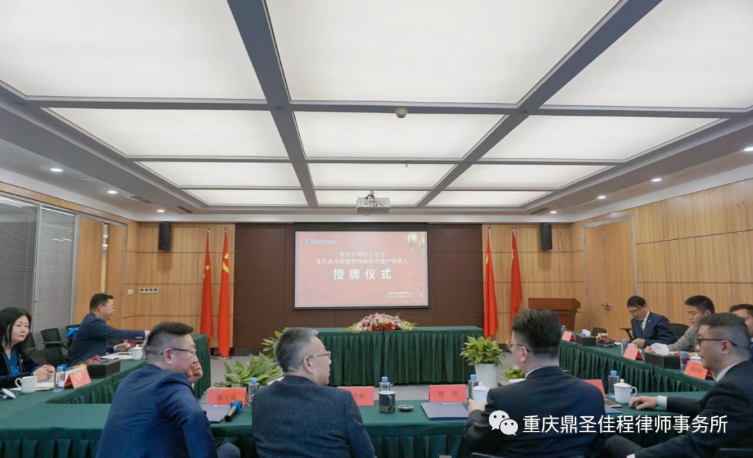 4月13日,重庆市国信公证处涉外事务部部长饶伟、民事事务部部长张永林到我所为入选该处遗产管理人(机构)推荐名录进行了正式授牌,并召开了座谈会。我所主任胡冬舫、管委会主任蒋文斌、党支部书记蒲东明、管委会副主任高燕、姜泽国、监事樊向忠等参与了座谈会,双方进行了深入的交流,并为后续合作共赢奠定了基础。