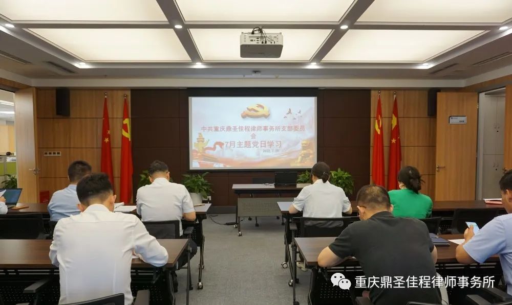 7月29日,中共重庆鼎圣佳程律师事务所支部委员会组织开展了7月主题党日活动,全体党员在会议室集中学习了《宣言:什么是中国共产党,中国共产党干什么》和中国共产党重庆市第六次代表大会精神,集体观看了2021年“感动江北十大人物”老党员周洪裕事迹的视频,并发表了各自感想。
