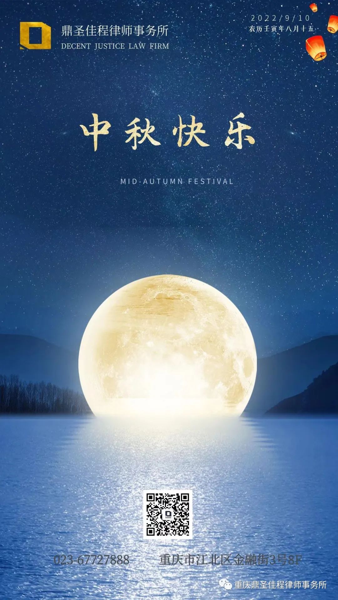 我所一直秉持“智慧、善良、诚信、专业”的执业理念,深知一个律所的发展离不开全所律师的共同努力与真心付出,也离不开每一位当事人及客户的支持与认可。在未来的日子里,鼎圣佳程全体员工必将再接再厉,不断提高法律服务效率、提升法律服务专业水准,用实际行动帮助各行各业的伙伴解决问题,与大家共克时艰、共渡难关。在此,重庆鼎圣佳程律师事务所全体同仁衷心祝愿每一位家人中秋快乐,阖家团圆!