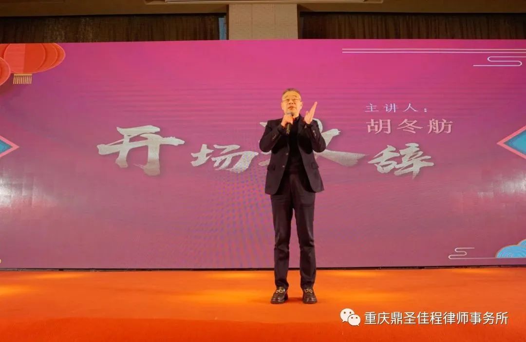 表演结束后,我所管委会主任蒋文斌上台致辞,并对全所律师寄予美好祝愿,希望我所律师在新的一年“凝心聚力 笃志前行”,共同将鼎圣佳程推向一个新的台阶。