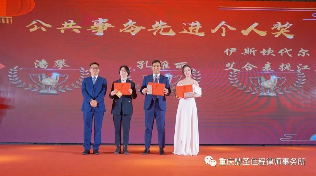 ![]() ![]() ![]() ![]() ![]() 合伙人卓越贡献奖:胡冬舫、高燕、黄先忠 颁奖人:蒋文斌 金牌合伙人奖:蒲东明、蒋文斌、马新喜、周才林、邱晓杰、朱清 颁奖人:胡冬舫、高燕、黄先忠 优秀合伙人奖:郑潭照、张弘婷、苏剑、姜泽国、张呈祥、王小平、蒲炳南、马海栋、吴春燕 颁奖人:蒲东明、马新喜、周才林、邱晓杰、朱清 优秀律师奖:李游、涂锐、张信、王菊芳、文仁超 颁奖人:张弘婷、苏剑、张呈祥、蒲炳南、马海栋 优秀实习律师奖:赵明雪、舒志飞、聂聃 颁奖人:王小平 ![]() ![]() ![]() ![]() ![]() 公共事务先进个人奖:孔雅丽、潘攀、伊斯坎代尔·艾合麦提江 颁奖人:蒲东明 优秀行政财务人员奖:钟媛、韦淼、金可心 颁奖人:姜泽国 最佳青年合伙人奖:马新喜、周才林、朱清 颁奖人:胡冬舫 优秀团队奖:金融团队、1990团队 颁奖人:胡冬舫、蒋文斌 集体荣誉贡献奖:蒲炳南、周鹏浩、李乾、杨桥 颁奖人:高燕