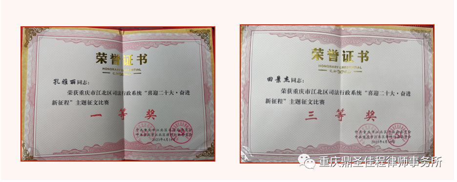 鼎圣佳程简讯|我所党员律师在江北区司法行政系统主题征文比赛及主题演讲比赛中获奖