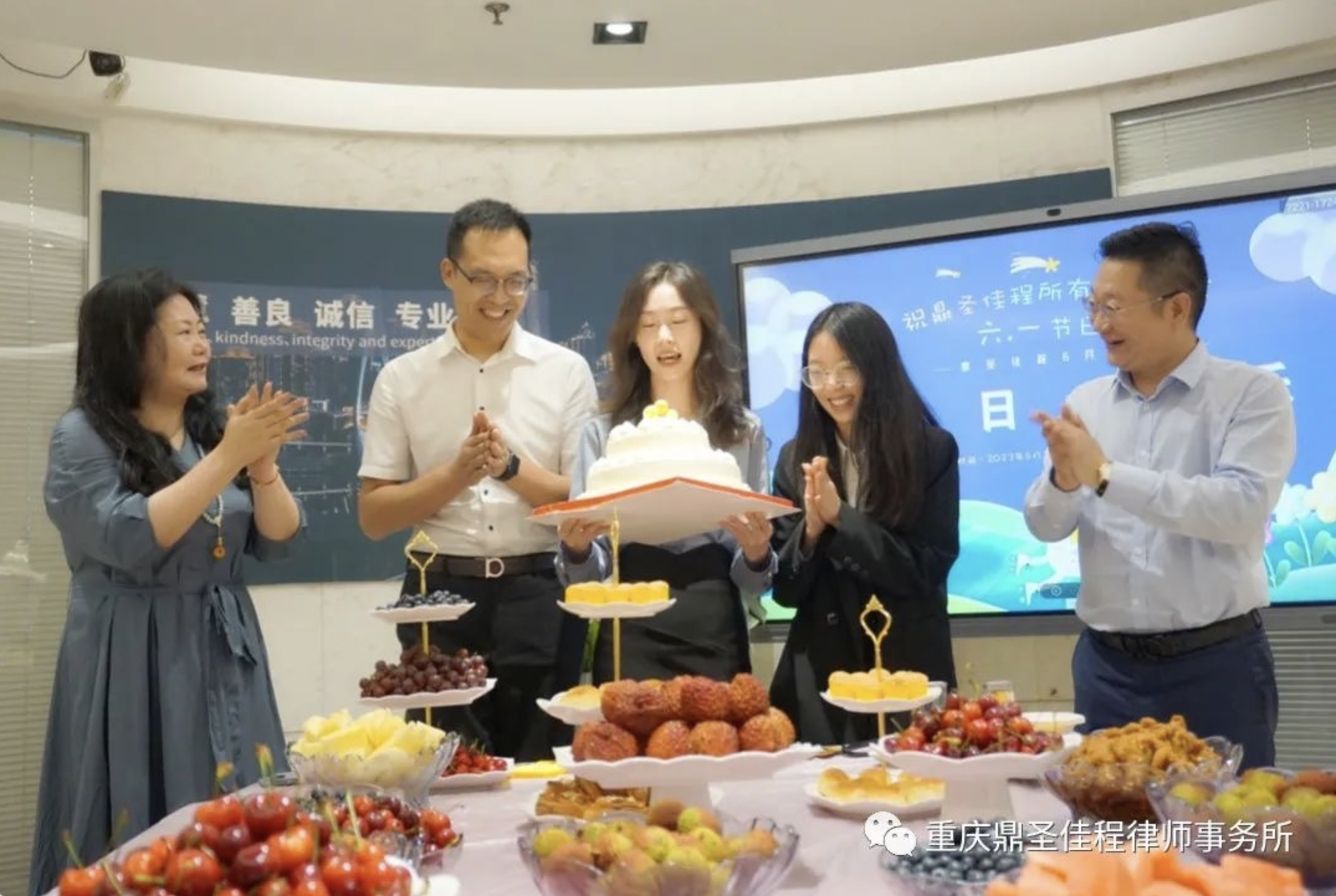 欢度六一,共庆成长。6月1日,我所为6月寿星精心准备了一场充满童真童趣的生日会,还邀请了我所律师家的小朋友到律所一起过六一儿童节。在为我所6月寿星送上祝福的同时,大小朋友齐聚圆厅,共同体验童年的快乐。