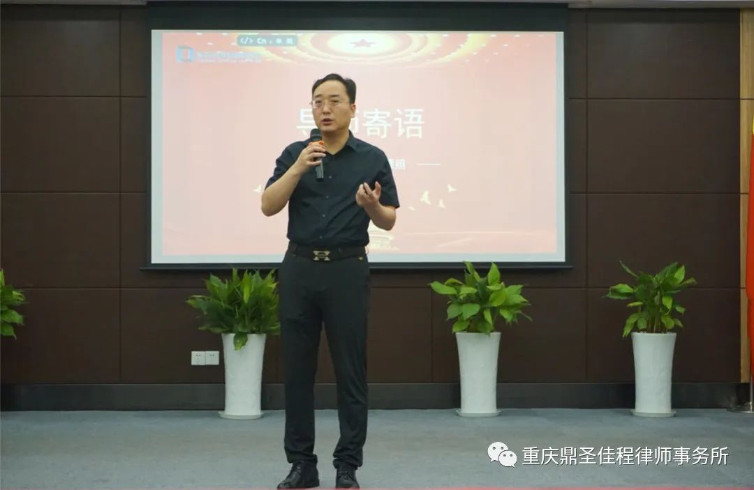 随后,我所璧山分所负责人郑潭照作为指导老师代表上台作了发言。郑律师结合现场每一位新执业律师的实习总结,发表了自己作为指导老师的个人见解,并鼓励大家在以后的执业生涯中要勇敢表达自己的看法,并学会恰当地与当事人及客户进行沟通。